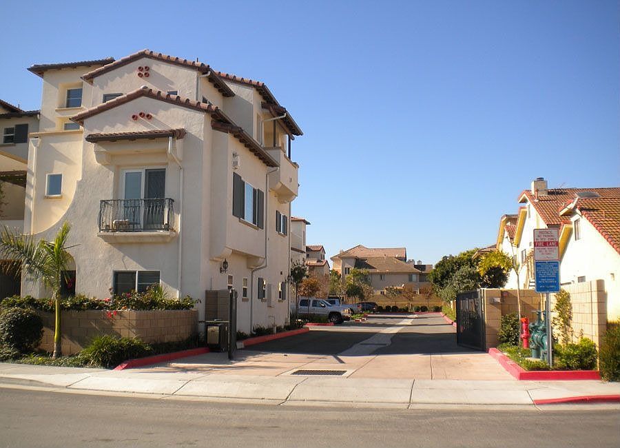 You will fall in love with this unique floorplan located a short way from The Wetlands, Huntington Harbour and the Ocean. This is a newer gated complex of 13 homes. Enter on the ground floor to a formal entry and then an oversize bedroom and bath with it's own sliding door to the side yard. On this floor you will also find the laundry and direct access to a 2 car garage. Up the stairs and you will be surprised at the size of the Living room and Dining room area with a romantic fireplace. The kitchen is open to this great room by a breakfast bar. On this floor you will also find the 2nd bedroom and bath. Taking the stairs up to the 3rd floor and you will see a huge bedroom that is the entire 3rd floor. This Master bedroom is large enough to include a sitting room. There is a walk in closet plus a Master bath with separate tub and shower.