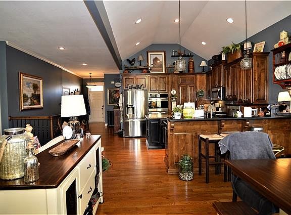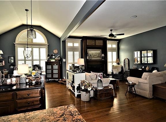 - Ceiling Fan(s), Custom Cabinets, Kitchen Island, Pantry, Stained Cabinets, Vaulted Ceiling(s), Walk-In Closet(s)