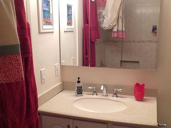 Gorgeous private Sea Harbor community with pool, spa, laundry, gym and lots of private and quiet green/grassy areas. Bottom, corner unit is one bedroom, one bath unit measures 711 square feet and includes a car port and assigned parking spot. Cable T.V, waste management and water also included. Unit includes: Includes: Walk in closet, fire pit, BBQ, and refrigerator, ceiling fans, ungraded bathroom, tile and real hardwood wood flooring Green Belt view from one (larger) of the two private patios. Optional Furnished with king size bed, couch, televisions, etc.