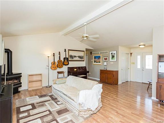 Gorgeous 3 bed/ 2 bath Ranch with amazing views! The home features a stamped concrete driveway and walk way, and beautiful landscaping. There is a true oversized garage 25x19 space on one side, great for large trucks or for a work bench. The home has the Open floor plan that everyone is looking for . There are soaring vaults through the great room and kitchen. The Kitchen has a center island, corner sink to look out on to your beautiful view. There is also a large pantry and a main floor laundry room with cabinets for storage. The great room has a gas corner stove. There are 3 spacious bedrooms including the master that has a walk in closet and a master bath suite with a separate tub, and a corner shower. In the kitchen you walk out on to your vinyl deck overlooking the beautiful views and the yard, currently with a large garden area. The L/L is awaiting your finishing touches. It walks out to the fenced yard.