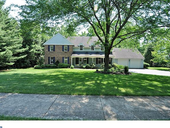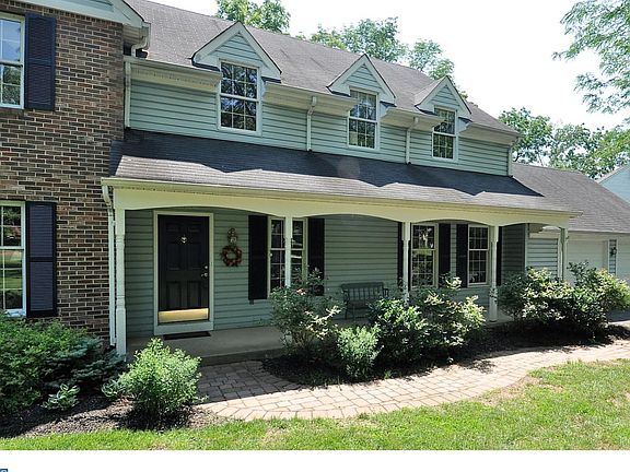 Class and character abound in this farmhouse style home with a large covered front porch and dormered windows situated on a very desirable cul-de-sac in Towamencin Township. *** Fresh paint and new carpets*** Enter into a two-story foyer with a beautiful turned staircase and gleaming hardwood floors that extend through to the kitchen. The eat-in kitchen has a large center island with granite counters, contrasting Corian counters under the cabinets, stainless steel and black appliances, recessed lights, and a large pantry. The kitchen opens to the adjacent family room which boasts a large brick hearth fireplace, built-in bookshelves, and French glass doors leading to an expansive 2-tiered deck with bench seating, planters and steps to ground level. The large rear yard is very private and peaceful backing to trees. Back inside, the living room and dining room are both very spacious and offer abundant natural light. A powder room and separate laundry/mudroom complete the main level. The master bedroom has a remodeled master bath with a corner soaking tub, double width shower with seamless glass door and tile surround, ceramic tile floor, skylight, built-in shelving, and newer fixtures. The master also boasts a large dressing area with three closets and large mirrored area with abundant counter space and a sink. Three other spacious bedrooms and a hall bath complete the second floor. A full unfinished basement and an oversized 2-car garage offer additional space and storage. Impressive room sizes throughout, tasteful d~cor and conveniently located with easy access to schools, shopping and commuter routes.