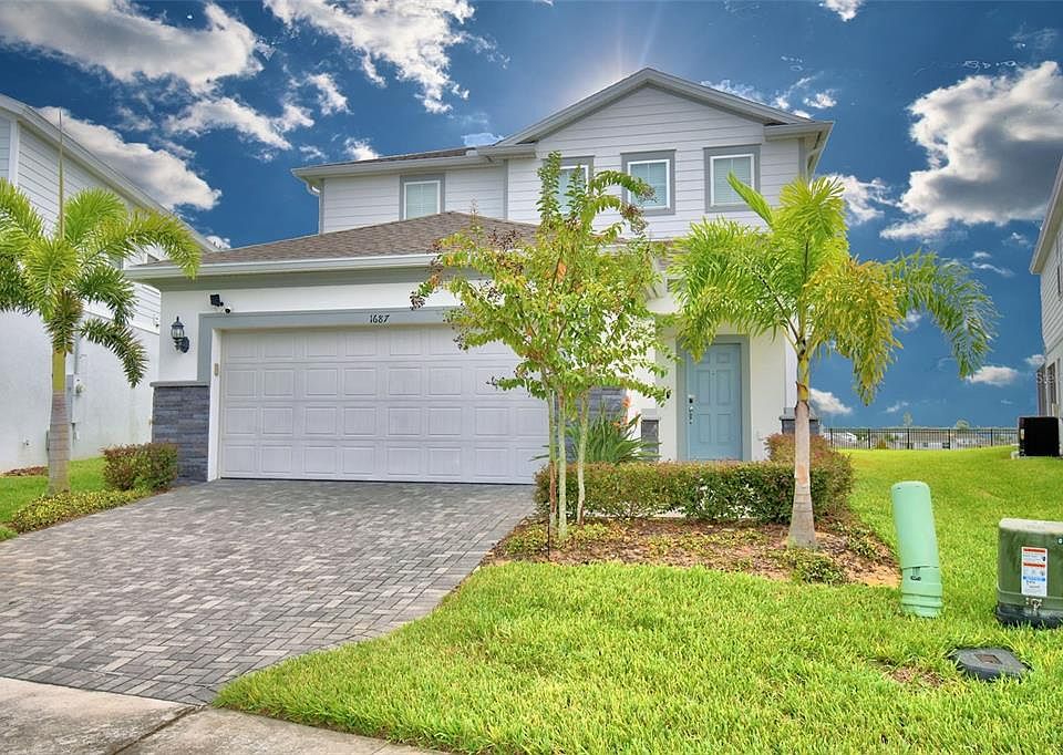 Massive Price Improvement! First full year of HOA fees paid for by seller! One year home warranty also provided! Beautifully maintained property in the desirable community of Windsor Island Resort. This five bedroom, five and a half bath home offers the perfect blend of luxury, comfort and convenience. The open floor plan and spacious layout provides ample space for families of all sizes. Modern kitchen features a large island, stainless steel appliances, granite countertops, and plenty of storage space. Dual primary suites, one on the first floor and one upstairs, offering flexibility and convenience for multi-generational families or groups. All other bedrooms have their own private bathroom. The second floor loft area provides a space for a TV/game room. Step outside to an outdoor oasis, ideal for soaking up the Florida sun. This peaceful outdoor space is perfect for lounging, entertaining, or taking in the nightly Disney fireworks or the occasional rocket launch! The home comes fully equipped with Solar Panels for low energy costs each month! Community amenities include: clubhouse with two bars and restaurant, large community pool, fitness center, game room, kids splash area, lazy river, slides, basketball and volleyball courts, 9-hole mini-golf course, fire pit, hammock park, spa, and tropical walkway. Monthly HOA fees also include landscaping, garbage, cable and internet. This home has had one owner, has never been rented, and is move-in ready. Located just minutes from local attractions, shopping, and dining, with easy access to major highways for commutes to Orlando and beyond.