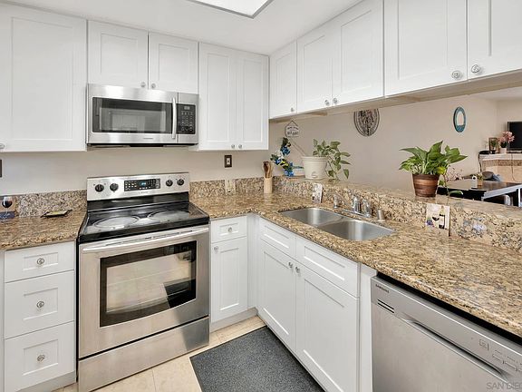 Location, location, location! Great 2BR/2BA 'entry-level' condo in the gated community of Melrose Villas! Updated unit w/ a modern kitchen remodel featuring newer cabinetry & granite slab countertops, tile flooring, all stainless-steel appliances, recessed lighting & more! Also features laminate wood flooring throughout the main living area & this unit has NO stairs. Enjoy the cozy fireplace in the living room, 2 upgraded bathrooms each w/ tile flooring & granite slab countertops, convenient 'in-unit' laundry closet w/ stackable washer & dryer, 2-Car parking & the additional private storage closet located just outside. Unit sits at the rear edge of the complex on a hilltop location, offering privacy & gorgeous VIEWS from the enclosed patio perfect for outdoor relaxing! Complex amenities include the gated community w/ recreation area & Pool/ Spa for residents use & the monthly HOA fee INCLUDES water & trash. Melrose Villas is also conveniently located close to the 805 freeway & nearby local shopping, dining & coffee shops, schools for all ages, the US/ Mexico border & all that Chula Vista has to offer!