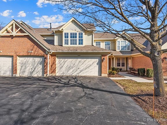 This stunning townhome is sure to impress with it's abundance of windows and two-story family room. This home has been freshly painted, has recessed dimmable lighting and gleaming hardwood floors throughout. Kitchen is recently updated with quartz countertops and a new refrigerator. Upstairs you'll find the primary bedroom with an ensuite, second bedroom, full bathroom and loft. There's tons of storage space with 4 large closets each with built in double hanging clothes rods. The loft area is the perfect spot for a home office, playroom or additional sitting area. Family room tv and entertainment surround sound stays. Enjoy the outdoors on the patio, perfect for grilling. Clubhouse community with outdoor pool and nearby walking trails. Great location near Randall Road, Crystal Lake schools, restaurants and shopping. Your new home awaits, see yourself living here! Highest and best offers are due by Tuesday 3/7 at 6:00pm