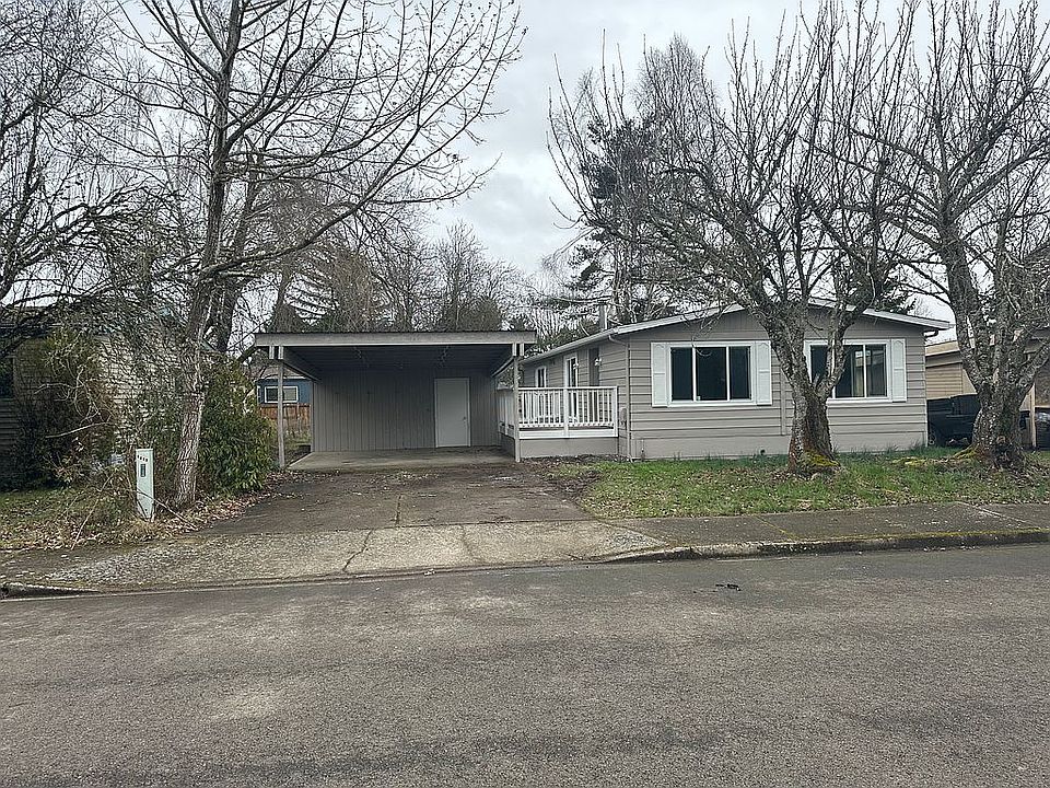 Move in ready ! Delightful family home near schools, shopping, restaurants, bus lines and more. Home sits on one of the biggest lots available in most manufactured home parks. You will find beautiful laminate flooring throughout, open and spacious kitchen with many cabinets for your cooking needs. Home has two living spaces and is great for larger family with kids. Second family space off of kitchen offers a wonderful wood burning stove to keep you warm on those cold winter nights. Sliding glass door takes you out to a large patio deck where you and your friend and family will enjoy summer BBQ's and gatherings. Yard is fenced and offers many established fruit trees, space for gardening, and so much more. There is carport for for 2 cars to park side by side. The home is turn-key ready to go and the best part about it all is the space rent is at $525.00 a month. This home will sell quickly as it is very hard to find space rent this low and finding this diamond in the rough. One of a kind !!!!!