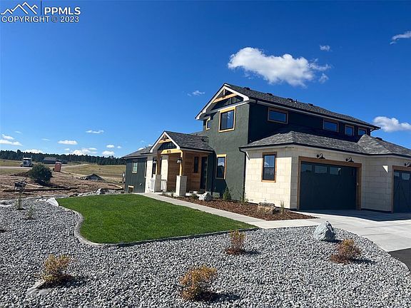 Welcome home to this custom home with gorgeous Pikes Peak views on 3 acres! When you walk into the front door you will find a large living space with vaulted ceilings, Hardwood floors. The Large custom kitchen welcomes chefs at heart, as you will find a very large island w/ food prep sink, double ovens, large range w/pot filler, an oversized pantry to hold all the delicious ingredients. One won't mind doing dishes while enjoying the wonderful views out the window. The large covered patio is conveniently located off the kitchen for those many hours to be spent outside. For those special meals you will find a large dining room with plenty of room for all friends and family. Walking into the Master bedroom you will find two separate closets, an adjoining spa like bathroom with two separate vanity areas, a free standing tub and a very large walk in shower. The laundry/mudroom is located on the main floor with it's own entrance to the back patio. Upstairs is a small loft area, office (non conforming bedroom) with its own balcony to enjoy the beautiful Colorado sunsets and amazing views of Pikes Peak, and a bedroom w/adjoining bath. Downstairs you will find an open wet bar area for all to enjoy, two separate entertaining areas one for games and entertainment and one for those that enjoy watching a good movie, a powder bath for quests, Two additional bedrooms with attached bath.