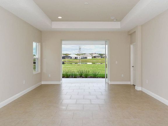 The Fresh Spring all-new home in Parrish offers a beautiful lake view.. The open living area that holds a designer kitchen, café dining area, great room and ceramic tile floors throughout. The kitchen features an island, Linen cabinets, granite counter tops, a walk-in pantry, and stainless steel appliances. In the master suite you'll find an inviting bedroom, walk-in closet and dual sink bath with walk-in shower and water closet. One of the two secondary bedrooms includes a walk-in closet. The bedrooms feature luxurious carpeting while a den has wood flooring. This Neal Communities home also features a den with wood floor, covered lanai and 2' extension on the garage. Visit River's Reach, just minutes from Lakewood Ranch. Call today for more information and to schedule your appointment.