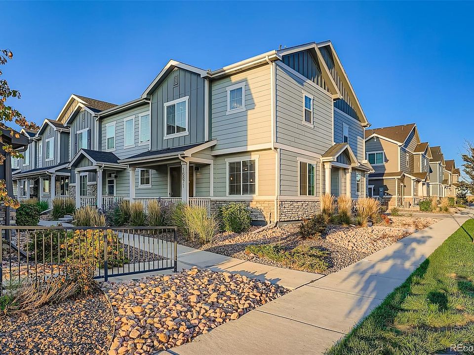 Welcome to this stunning 2021 Lokal townhome offering 1,846 sq ft, 3 bedrooms, 3 baths, and a 2-car garage. The main level features new wood floors and fresh carpet throughout. The chef’s kitchen shines with quartz counters, stainless steel appliances, a large pantry, and an oversized eat-in island. Upstairs, the primary suite boasts a spa-like bath and custom walk-in closet. Enjoy community amenities including a park and basketball court. Ideally located near E-470, Hwy 76 & 85, with quick access to DIA and Prairie Center for shopping and dining—this move-in ready home blends style, comfort, and convenience.