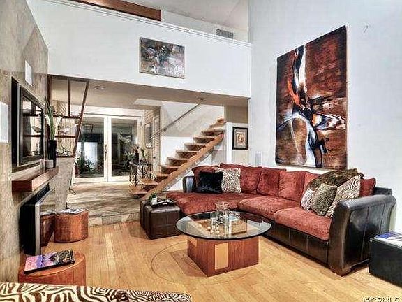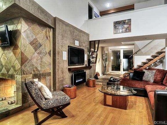Frank Lloyd Wright inspired with incredible design elements featuring a warm palette of natural materials such as redwood, maple, cedar, safari quartzite, ledge stone, and copper bringing warmth to the sharp contemporary lines. Courtyard entrance with cedar stained solid gate and intercom entry, standing seam metal roof, venetian plaster, surround sound and built in speakers, security system, recessed lighting crown molding, three sided quartzite fireplace. Floor to ceiling glass at entire first floor, dual A/C, kitchen with granite countertops and island with raised curved glass bar top. Appliances include subzero, double oven and warming drawer, and wine refrigerator, new microwave, 16 to 20 foot high ceilings with copper-aluminum wrapped ceiling beams and contemporary ceiling fan. Contemporary solid hardwood floating steps at staircase with copper wrapped stringers. All bedrooms with closet organizers. Backyard has salt water pool and Jacuzzi with spillways and waterfall features, Zen garden two story-atrium with Japanese maple, built in BBQ.