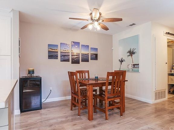 Located approximately 3 miles from the world famous, white sand beaches of "Surf City", this nicely remodeled, SINGLE STORY condo offers 2 bedrooms, 1 bath and is tucked away on a quiet cul-de-sac, with just 1 shared wall. Entering the home, you are greeted by an open floor plan, including a living room with double-paned, dual sliders to the private back patio and a dining area off the kitchen. Between the great natural light, combined with the neutral-colored laminate floors, this home is warm and inviting. The nicely appointed kitchen has plenty of white shaker style cabinets with soft closing drawers, two lazy susans and quartz countertops, a breakfast bar/peninsula, stainless steel appliances, including a 5-burner electric stove, and recessed lighting throughout. Down the hall from the dining area, there are two bedrooms. A double door entry leads to the spacious master suite that has laminate flooring, a ceiling fan and a walk-in closet with built-ins and a barn door. There is a nicely sized secondary bedroom/office with a Murphy bed, ocean/beach wall mural, ceiling fan and closet barn doors as well. Both bedrooms share a nicely upgraded hallway bathroom with a mosaic tile step-in shower and glass enclosure. Next to the hallway bath is a service room, with a stackable washer and dryer, water heater, central furnace, and direct access to your 2 carports with plenty of storage space! Other upgrades include a nest thermostat, recessed lighting, scraped ceilings, new dual pane windows, slider and security door and hardware, laminate flooring and fresh interior paint throughout, and newer baseboards. Close to award winning schools and Golden West College. A short stroll to Irby Park and Murdy Community Center, as well as world class beaches, and the fine dining, entertainment and shops at Main St, Pacific City and Bella Terra. Also nearby is HB Central Park, library and senior center, HB Sports Complex, the equestrian center, Meadowlark golf course, the Wetlands and Huntington Harbor. Easy access to freeways and PCH. With many recent improvements, enjoy California coastal living at its finest! Price is for unfurnished place. Furnished available for additional cost. Renter's responsible for all utilities, small fixes such as changing light bulbs, toilet blocks. Limited two cats per home. No monthly pet rent charged. A one-time $100 application fee for processing application and background checks. Price is for unfurnished place. Furnished available for additional cost (furnished pics are for reference only).