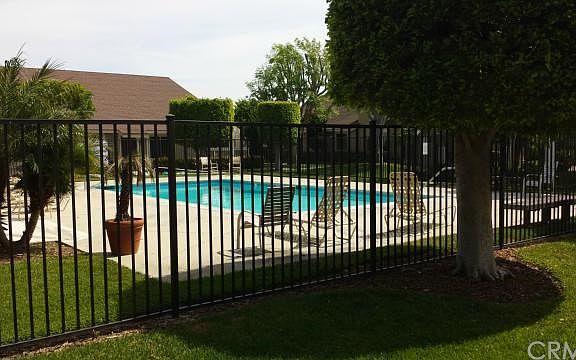 Beautiful home in a perfect location. Near shopping, schools, freeways, the Beach, and Bella Terra. Located at the back of this well maintained community, facing the Resort Style Pool. Inside is your own laundry room with space for full size washer and dryer. Private patio leads to your 2 covered parking spaces, that have lockable storage too. Nice size living room with a large window. Kitchen has newer cabinets and granite counter tops. Dining area is adjacent to the kitchen. There is a powder room down stairs and a storage closet. All bedrooms are upstairs and good size. This home is a 10.