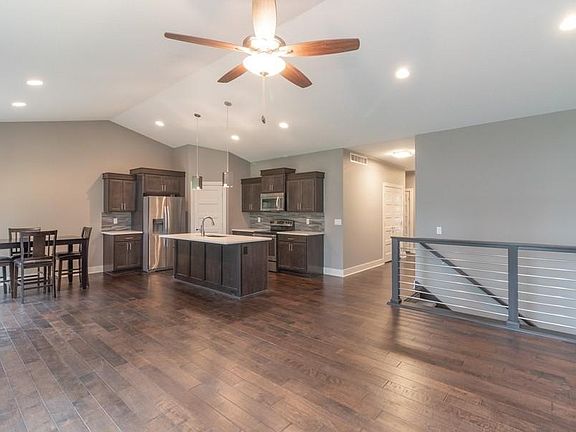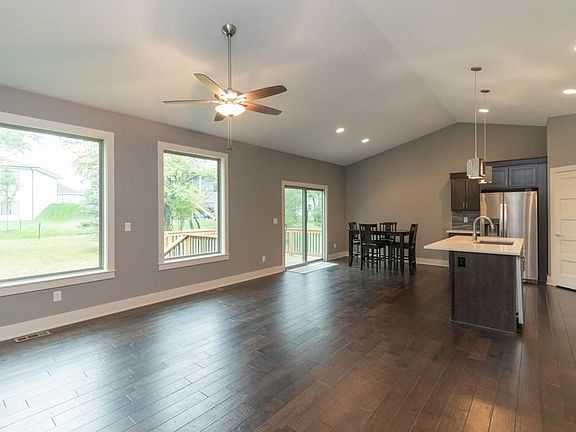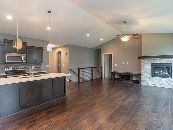 Welcome to Verona Hills! This one owner ranch is ready to go! Step inside to over 1,500 finished sqft in the open floor plan. Gorgeous hardwood floors start from the front door leading into vaulted great room w/custom audio components. Snuggle up to the fireplace in Iowa Winters. All stainless appliances are included in the well appointed kitchen w/ a panty! Beautiful lighting sets the stage over the island w/counter seating. Dining area views great room & sliders leading to a deck overlooking the yard. Retreat to the master suite w/tray ceiling. You will feel pampered w/the stunning tiled shower & double vanity. 1st laundry is super convenient w/pass by into the master walk-in closet. Split plan offers 2 additional bedrooms at the other side of the home w/guest bath between. Future finish will be easy in the lower level w/bathroom stub completed. There is plenty of storage in the 3 car garage. This desired area is near a park, schools, shopping & other conveniences. Home Sweet Home!
