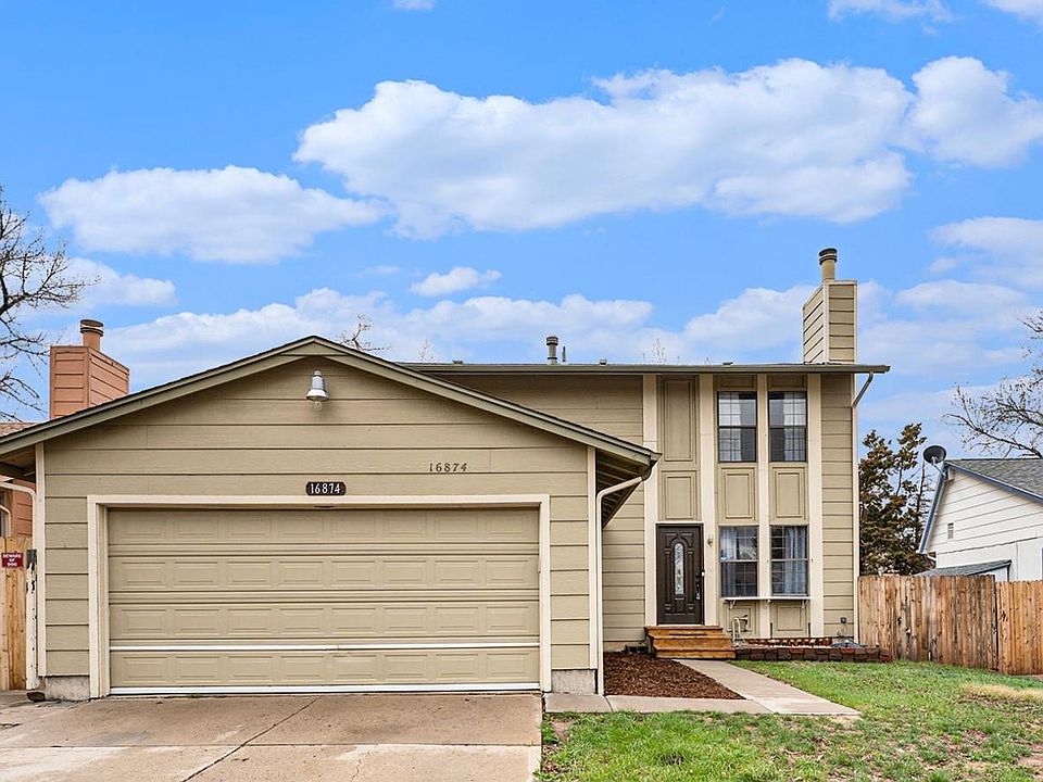HERE IT IS... This Mission Viejo home shining with brand new paint and carpet is definitely going to hold your attention... It highlights a little something for everyone - starting with an amazing price in the desireable Cherry Creek 5 School district. With 4 generously-sized bedrooms, 3 baths (2 Full), a covered patio, walkout balcony, sunroom, extra space to customize downstairs, an eat-in kitchen, storage shed, dog run, 2-car garage, and a beautiful wood-burning fireplace, it's just a start!!