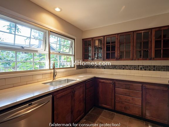 Please visit PropMhomes.com to schedule a showing. We show properties 7 days a week! Neighborhood: This home is in the Palisades neighborhood in Lake Oswego. One of the quietest most private friendly neighborhoods in Lake Oswego with the farmers market on Saturdays and best library in the metro area. Access to town via I-5 or Macadam/State Street. Lake Oswego has its own identity. 25 minutes from Downtown! Nearby parks include South Shore Natural Area, Campbell Native Gardens and Cooks Butte Park. WFH - LIVE AND WORK FROM HOME! Living Area: This is a two story mid-century modern home with a daylight basement. Large floor-to-ceiling windows and ceiling fan in the spacious living room with gas insert corner fireplace. Built-in shelving and storage throughout! Redone hardwoods throughout the top floor. Family room located on the lower level with laminate floors and gas insert fireplace. Kitchen: Gorgeous kitchen features engineered quartz counters, slate floors, exposed brick, glass accentuated backsplash, glass front cabinetry, large hanging pot rack, and stainless steel appliances including a dishwasher, sink with disposal, 6 burner Viking range and convection oven with griddle, and refrigerator. *Tenant will need to provide a microwave, if desired. Dining area offers a large wall of additional built-in storage with countertop serving area. French doors that open to the spacious outdoor deck and back yard. Bedrooms/Baths: Four bedrooms plus two bathrooms. Main floor has three bedrooms with hardwood floors and offers a full bathroom with shower/tub combination and dual sink vanity. Very large master on the lower level features natural light and plush carpet, with additional area for sitting/reading. Wall of closets with cedar and double hang area. Opens to the family room. Master bathroom with walk-in shower, two shower heads, and dual sink vanities with undercounter storage. Mirrored medicine cabinets, privacy frosted windows, and glass accented tiled sink area in both bathrooms. Exterior/ Parking: Attached two car garage and fenced yard. Large yard with grass in the front and wooded area with covered patio in the back with bark dust. Birch trees in front provide shade in the early morning. Very large deck in back on upper level! Transportation: Car-Dependent - Walk Score 12 Minimal Transit - Transit Score 17 Special Terms: The house is eligible for lake access with the Palisades easement blocks away (separate fees to easement required). Available for minimum one year lease with option to renew. We are the premier Oregon Property Management Company. Rental Criteria: Please visit our website at PropMhomes.com to review our rental criteria. Included in The Rent: Landscaping Upkeep Tenant Responsible for: Electric, Garbage, Water/Sewer, Heat/AC, Gas, and Cable/Internet. Washer/Dryer: Full-size washer and gas dryer. New in 2016. Gas water heater. New in 2016. Room to iron or hang clothes. Window for natural light. Door to outside with a covered patio area. Heating Source: Forced Air Modern central high efficiency system with gas heat. Cooling Source: Central Air Furnished: No Pets: Yes. Pet Rent $40 a month per pet and additional $500 Security Deposit per pet. Elementary School: Westridge Middle School: Lake Oswego High School: Lakeridge Disclaimer: All information, regardless of source, is not guaranteed and should be independently verified. Property may have an HOA/COA that may have additional charges associated with move in/move out. Tenant(s) would be responsible for verification of these charges as well as associated costs. Applications are processed first come, first served.