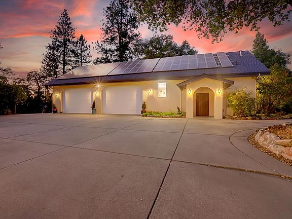 Classic Car Enthusiasts. Custom Mediterranean style home with distant views. 4460+/-sq. ft. home plus 2500+/- sq. ft. Garagemahal fully insulated, heated, and air-conditioned. Perfect for your car collection, room for 10 cars or your prized possessions, includes shop, office, hoist, full bathroom, and built-in cabinets. Home offers a large kitchen with center island, breakfast area, formal dining, living, family room, master bedroom, guest bedroom and office on the main entry level. Arched doorways add character to the stylish design. 2 guest bedrooms, full bath, and spacious tv/game room downstairs with access to the outdoor kitchen and inground swimming pool with stone overhead waterfall & automatic cover. Landscaping with river style creek meandering near the pool and entertaining patio. 2 2-Car attached garages. Main level covered deck. 2 entry gates, concrete circular driveway plus extra parking for guests, RV, boats, or other equipment. Riding arena. Fenced corral for livestock with room for expansion on the 7.89 acres. 1" of Nevada Irrigation District irrigation water. 2 large holding tanks for surplus storage. Garden area.