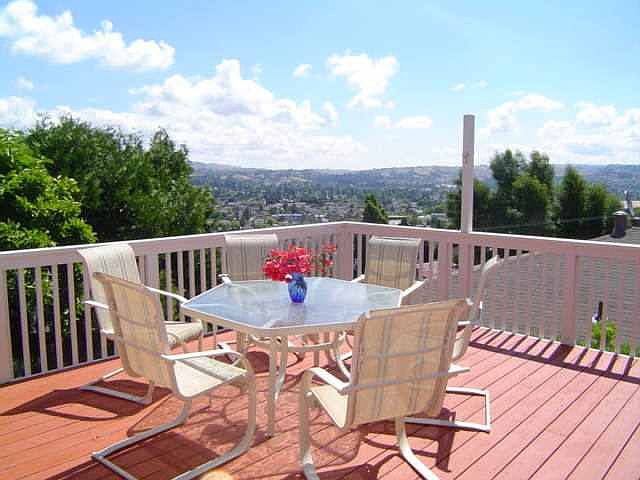 *****Castro Valley School District***** Gorgeous valley view from sun-drenched deck! Show this elegant home to your sophisticated buyers. Remod. kitchen w/ granite counters Huge formal dining room w/ hardwood floors, updated baths. Big bonus room off yard for work/play/storage!