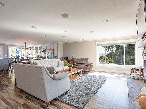 Castro Valley schools and San Leandro address. Lovingly remodeled with major attention to detail. Open floor plan with gourmet kitchen, dining area, spacious island with informal seating, gas stove, and stainless appliances. Large gas fireplace in living room, rustic, distressed wood floors, crown moldings, large picture windows, and sweeping views from the spacious, sun drenched deck and level rear patio and deck below! Large master suite with a large tile bath, spacious 2nd bedroom and hall bath. 2 fireplace pits and conversation areas for those outdoorsy days and evenings. Ideal home for entertaining. Well maintained home shows pride of ownership. Showings by appt only.