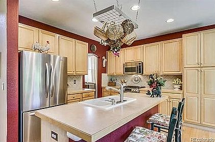 Location, location, location. Cherry Crk S.D. #5 and bus stops 100 ft from door. Walking distance to elementry school. Highridge park accross the street. Five minute drive to RTD station and 30 minutes to Den. Airport. All Kitchen stainless appliances plus washer and dryer is included. Stove is dual gas/elect-convection/conventional--the high end GE Cafe stove. Main floor office has built in shelves. Surround sound in family room and basement. Gas fireplace in family rm. 3 ceiling fans and A/C in home. 3 car garage has storage shelves. Back yard has organic vegetable garden and stone table for your gas grill. . Three beds up plus a loft and oversized walk in closet off the master 5 piece bath. Upgraded light fixtures and silk Durpioni curtains stay. Finished basement with surround sound, and radon system . Upgraded light fixtures and Bosch dishwasher and Kitchen Aid Refrigerator. $3000 allowance for credit to buyer for granite counter or other updates.