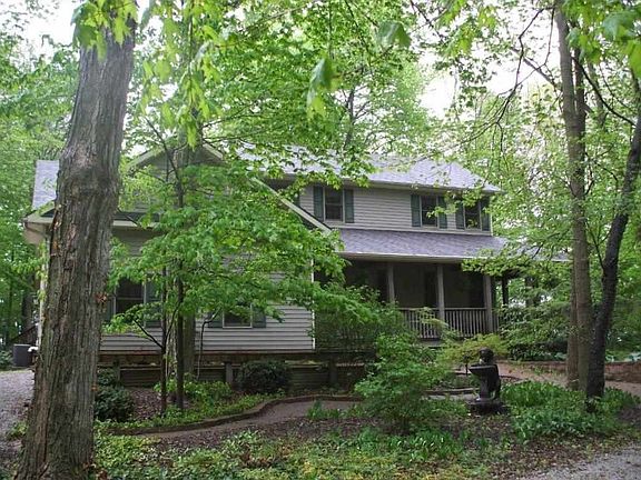 #6608 The long and winding lane leads to you own private sanctuary secluded on this 7 acre wooded parcel, including your own pond. This 2 story home features a 3 sided wraparound porch, accented by paver brick walkways & perennial flower beds. 4 bedrms including a main level master w/14' ceiling & bath w/oval garden tub. Formal living rm w/ coiffured ceilings, dining rm for formal entertaining. Fully applianced kitchen w/custom hickory cabinetry, quartz countertops & milled lumber ceiling. 2 story family rm w/18' ceilings, ventless gas log fireplace, 2 skylights & a 120 yr old banister. Upper level offers cozy loft area & 3 bedrms. Lower level has 1300 sq ft finished for family entertainment & 400+ sq ft storage rm. Attached garage & 24x32 outbuilding w/overhead door.