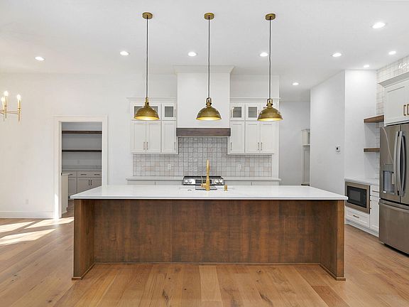 Welcome to this masterfully crafted new construction home by Magda Enterprises, where timeless design and modern comfort come together in the heart of the Ozark School District. From its stately full brick exterior to its thoughtfully curated interior finishes, every detail of this residence has been designed to impress. Inside, the open-concept living space is anchored by a custom-designed fireplace, creating both a focal point and a warm gathering place. The seamless flow leads into a gourmet kitchen that combines style and function with quartz countertops, a coffee bar area, walk-in pantry, and premium soft-close cabinetry designed by Woodhouse Cabinetry. A full suite of appliances completes this culinary haven, making it ready for both quiet mornings and lively entertaining. Throughout the home, engineered hardwood flooring from Missouri Tile adds richness and durability, while expansive windows invite natural light into every room. The four spacious bedrooms provide serene retreats, including a private owner's suite with spa-inspired finishes designed for relaxation. Additionally, the office space provides a quiet area to work from home. Step outside and enjoy watching the neighbors alpacas from the covered patio & yard, where a built-in irrigation system ensures effortless upkeep, leaving more time to savor your surroundings. A 3-car garage offers convenience and ample storage for today's lifestyle. This is more than a home--it's a statement of quality, comfort, and enduring beauty.