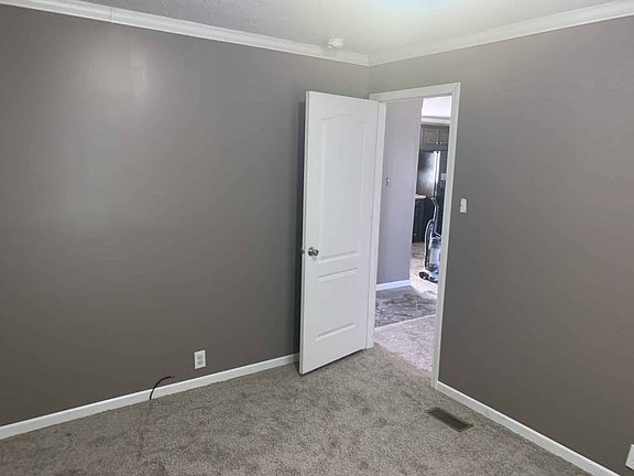 This newer manfuctured home sits on a quiet corner lot. The master bedroom features an en suite with walk in closet. The remaining 2 bedrooms with large closets are located at the opposite end of the home where the second full bath is located as well. New concrete patio out back and new concrete front porch. This home sits on a large lot that will include approximately half of the neighboring vacant lot to the west in the sale.