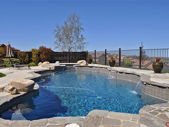 WOW! This impressive and highly upgraded 4 bedroom, 3.5 bath home is situated on a generous 1/4 AC view lot in Montebello Estates. Well appointed and move-in ready....from the rich stone floor entry to the dramatic 20'+ ceiling vaults in the formal living room, you'll find abundant amenities & custom features through-out all 2,900+/- SqFt of this home. Granite counters, upgraded appliances & a walk-in pantry off the island kitchen, rich hand-scraped wood floors, upgraded base/crown mouldings, and en-suite bathrooms off 3 of the 4 bedrooms. As nice as all of the interior amenities are, they pale by comparison to the amazing backyard! It's the views that you'll see first, but then you'll notice the details.like the built-in BBQ island (with refrigerator!), stamped concrete patios, and an amazing in-ground pool and spa surrounded by custom rock out-croppings! To top it off, there is a 3 car garage + shop area for the bikes and hobbies! Be sure to view the 50+ image visual tour!