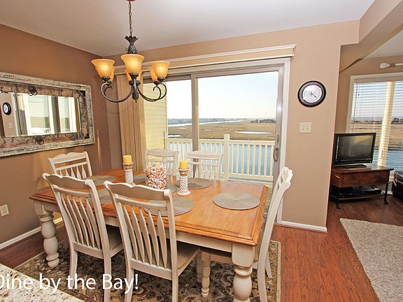 Wide spanning sunset and water views can be enjoyed from all over this extensively renovated, 3rd floor Camalon Condominium. With the picturesque setting of the preserved wetland and wildlife in Cedar Island as the back drop, this very special home offers some of the best views you will find from any condo on 7 Mile Island. No stone was left unturned in reimagining this beautiful space. The foyer was turned into a mudroom with cubbies allowing for plenty of extra storage. The hallway was lined with a shaker style wainscoting leading into a completely renovated kitchen. An extra large peninsula leaves plenty of island seating for nights where the large dining room cant fit all of your guests. A sectional sofa in the exquisitely decorated living area is the perfect spot for the family to gather and watch the sun drop at the end of the day. The outside deck is outfit with multiple seating areas and an awning. Both bathrooms have been completely renovated. Built-in bunks in both non-master bedrooms make this unit feel twice as large and help accommodate extended family. The master suite is large, with an en-suite bathroom, and the perfect place to retire at the end of great day on the water. Other improvements include new doors and door hardware, beautiful light fixtures, and hardwood floors. Waterside, the association has one of the nicest dock systems in town. The entire docking system has been replaced, with a newer vinyl bulk head, vinyl deckboards, marine lighting and deep water slips (each unit is deeded one slip) make this docking system the envy of the other associations in town. This unit is also unique in that it is one of four units in the association with exterior stair access in addition to the interior stair. The condominium association is financially sound and always making improvements, with new outdoor building and individual deck lighting completed in 2017. Plenty of storage for bikes, beach and bay toys complete one of the more unique condo offerings currently available for sale. The central location, extensive improvements, and endless views make this property an absolute must see.