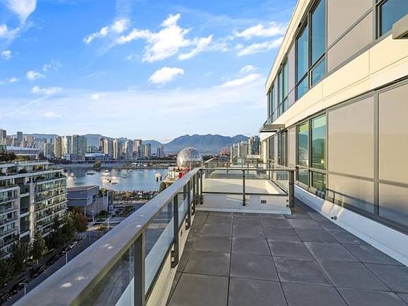 Welcome to Navio! Two boutique buildings by Concert Properties. The homes at NAVIO offer a true breath of fresh air: large, open floorplans thoughtfully designed to maximize living space and generous balconies perfect for entertaining and outdoor living. Follow the seawall home to your front door and enjoy more breathing room both inside and out. The gorgeous, 1400 sf, luxury sub penthouse comes with 2 bedrooms, 2 bathrooms, HUGE deck & an open concept layout makes brilliant use of space. The color palette and rich natural materials are inspired by the waterfront and park setting. Dramatic views of the ocean, mountains and city skyline with large windows bathe the rooms in sunlight and air-conditioning will enhance your comfort. Comes with 2 secure PARKING spots and 2 storage space! Amenities include gorgeous gym, amenity room and concierge. NAVIO claims an enviable location on the Seawall in one of Vancouver's most desirable neighbourhoods. Southeast False Creek is a vibrant community with its own gourmet grocery store and an eclectic array of specialty shops, cafes, restaurants, and entertainment. Quietly removed from the city center, it's still connected to the best the city has to offer. Enjoy your commute on the Seawall into downtown. Cycle to Granville Island for farm fresh produce. Or stroll to Gastown for an evening out.