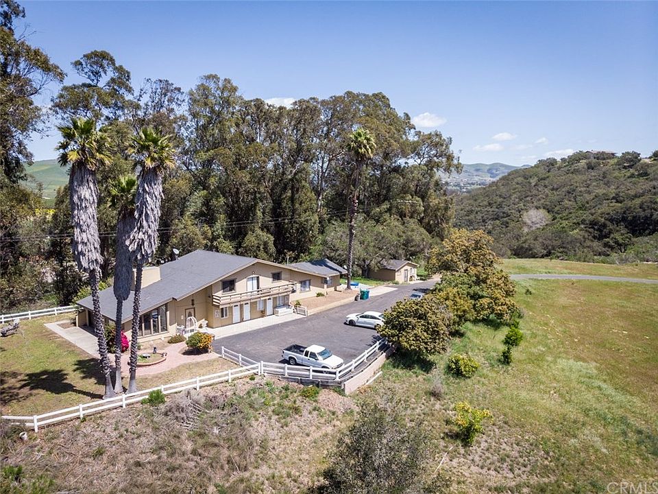 Situated on just under 11 acres, this great 5 bedroom, 3 bath home features 3904 sq ft, including a 2 bedroom, 1 bath attached guest unit. Previously utilized as a care facility, it easily transitions to a family home with ample room for entertaining. Set back from the road and nestled among the trees provide a private setting for this unique home. An additional home featuring 3 bedrooms, 2 baths make this a great investment opportunity or family compound. Featuring a covered front porch area with double door entrance offers an ideal area to enjoy your morning coffee. Wood flooring throughout including the spacious living room featuring decorative arches, cathedral ceilings, and French door access to the back patio. The formal dining room opens to the living room and well appointed kitchen. Plenty of room in the back yard for entertaining, gardening or even a pool! Three car attached garage with ample storage for all of your toys. Three additional out buildings add multiple storage opportunities. Owners have a transfer development credit (TDC) on file with the Land Conservatory enabling the lot to be split into two 5 acre parcels. Enjoy sweeping views of Laetitia Vineyards all the way to the Pismo Heights! Main house currently being rented for $5850 per month.