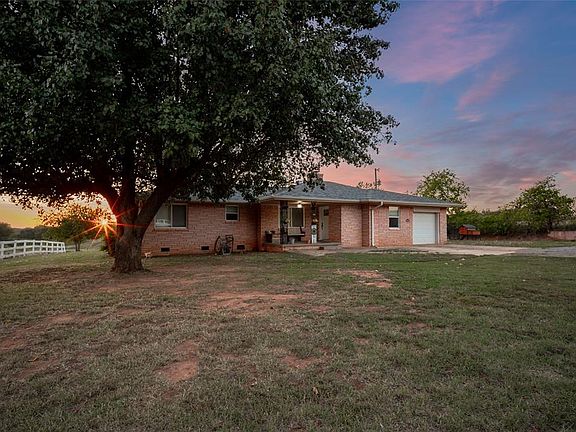 An incredible opportunity to have your very own slice of heaven! Feast your eyes on this immaculate, proudly cared for equestrian’s dream home – sitting on 5 GLORIOUS ACRES WITH RIDING ARENA AND BREATHTAKING SUNSET VIEW!! Fully fenced, with loafing shed & feed room, this gorgeous stretch of land features mature trees and plenty of space for horses and cattle to roam. So much love has been put into every inch of this wonderful home! A charming, covered front porch welcomes you into a beautifully updated living space, featuring bright windows, cozy fireplace, private study, wood panel accent wall and upgraded flooring. You will LOVE the fully remodeled country kitchen and dining area, complete with upgraded appliances, butcher block countertops, pantry, and white kitchen cabinetry. Spacious bedrooms with big, updated windows, ceiling fans and deep closets. Fully updated bathrooms with upgraded vanities, tub/shower combo and tons of storage space. Functional utility area with additional bath and charming barn door. Spend your evenings relaxing under the covered back patio and gazing upon the pure beauty of quiet country living. Storm shelter! Ask about USDA no down payment eligibility! A perfect place to raise a family and ride off into the sunset for your very own happy ending!