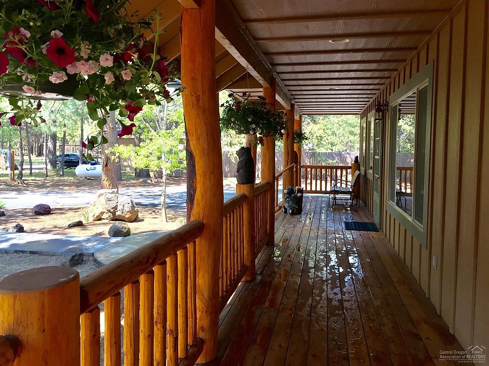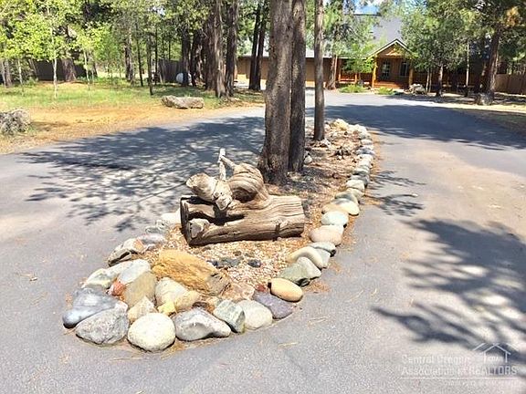 Lodge style single level home on 0.75 Ac. Long asphalt driveway w/RV parking. Triple car attached garage w/shelving & roll-up garage door at back of garage. Sprinkler sys. for lawn in backyard that backs to forest land. Covered back deck area has ceiling fan. Lg deck has hot tub. Log style covered front porch. Slate entry to vaulted ceilings & skylights. Log beam ceiling in kitchen & log accents off quartz counters. Kitchen nook & Dining Rm. Living rm has flr-to-ceiling river rock gas fireplace. Blinds are wood & honeycomb. Hs has Heat Pump. Wood wrap windows let in the sunshine/surrounding nature.