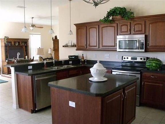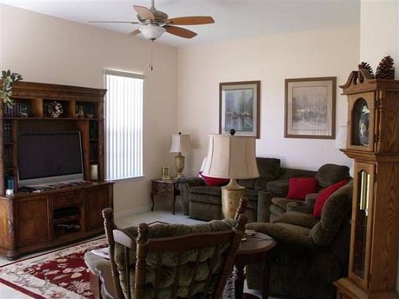 2010 SPRUCE MODEL WITH 10 FT CEILINGS, TILE, CHERRY WOOD CABINETS, EXTENDED LANAI W/BIRDCAGE, GOLFCART GARAGE, FRENCH DOORS, & A 8FT TRIPLE GLASS SLIDER OFF FAMILY ROOM. EASY ACCESS TO GOLFCOURSE AND POOLS. LIGHT & BRIGHT & PRICED BELOW "NEW SALES" REPLICATION. QUIET STREET, STAINLESS STEEL APPLIANCES, ISLAND KITCHEN W/BREAKFAST BAR, SEPARATE LAUNDRY ROOM OFF HALLWAY FROM GARAGE. CLEAN AND NEAT!