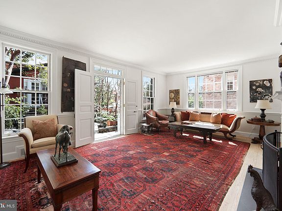 This quintessential Georgetown residence has approximately 3000 square feet of elegant living space with a flexible floor plan of 4 to 5 bedrooms including a rarely available detached carriage house suite. The stately semi-detached residence is set back from the street and the brick facade is enhanced with a double-sided front step entry and detailed millwork, including a lovely over-door pediment. The interior of the residence is flooded with natural sunlight from exposures on the three sides, which is further amplified by the large windows throughout. The house is wonderful for entertaining with generously scaled formal entertaining rooms and a seamless flow from indoors to outdoors. The main house offers a sophisticated front reception room and a gracious living room with a fireplace. The living room opens to a large, bluestone terrace, which is designed with mature trees and layered plantings for privacy. The entry level also has the added convenience of a powder room. The gourmet kitchen provides ample cabinetry storage and stainless-steel appliances. It opens to the elegant dining room, which is complemented with a fireplace, built-in shelving and cabinetry, and French doors to the exterior. There is an additional powder room on this floor as well. The second level of the house offers two bedroom suites, including the well-appointed primary. The beautiful primary bedroom has a wall of closets, a fireplace, and French doors to the Juliet balcony overlooking the lovely terrace below. The third level has two more bedrooms, one of which is currently being used as an office, connected by a full bathroom. There is also a private carriage house with stunning double French doors, a kitchenette, full bathroom, and sizable windows overlooking the lush terrace. The one-car garage below allows for covered secure parking and additional storage space. This special property is the last of the large estates owned by heiress Evalyn Walsh McLean, known as the last private owner of the 45-carat Hope Diamond, which is currently on exhibit at the Museum of Natural History.