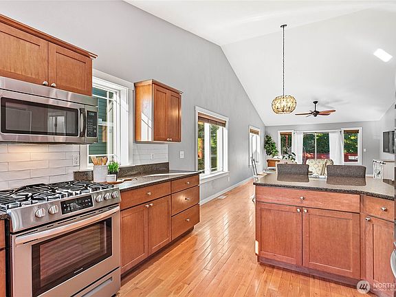 Newly sealed and painted Craftsman single level home. No HOA! Perfect entry level home, investment property or low maintenance living in desirable area. 1445 sf with spacious kitchen, granite countertops, stainless appliances, open concept space. Hardwood floors, new carpets & padding, 3 bedrooms, 2 full baths, lots of natural light, high ceilings and fully fenced yard with composite decking and outdoor shed. Natural gas forced air heating plus A/C! Large storage above garage w/ ladder access, storage shed out back. Sunny lot w/ garden beds, dwarf bing cherry and grapes. Close to city parks, trail systems, golf and local farms. Lynden's known for being the largest Dutch settlement in WA with a charming downtown, featuring a working windmill