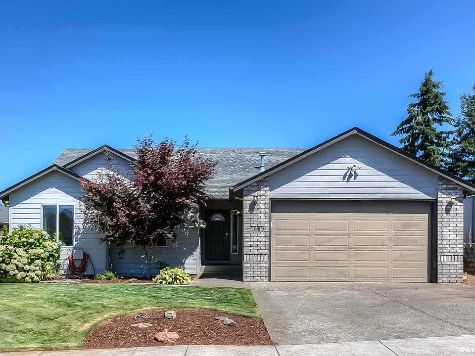 Accepted Offer with Contingencies. Open great room style floor plan with vaulted ceilings, gas fireplace, & new flooring in main living space. Granite counters in kitchen(16), S/S appliances. Granite counters in bathrooms. Located on a quiet South Salem dead end street. Hot tub and beautiful view of South Salem Hills.