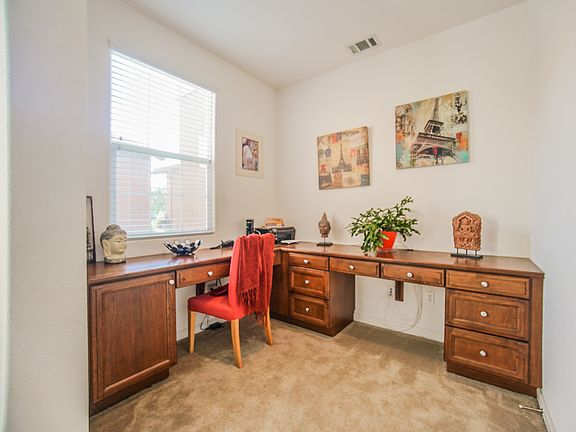 This gorgeous 2 story home welcomes you with a scolded courtyard upon entering. When you continue inside this home features a jr. master suite with a full bathroom & hall storage cabinet. Spacious formal living/dining room and half bath is also featured upon entering. The kitchen and family room combo offers an oversized center island with breakfast bar seating, matching appliances, solid countertops and an eat in kitchen area. The cozy family room has a wood burning F.P. and a special entertainment center alcove. Adjacent to the kitchen, is a pocket office with dual desks, granting you views of the private courtyard. Upstairs features a HUGE game/movie room with french doors and attached to a full bathroom. Vast master suite with private balcony access and a spa like master bathroom with custom tile and a sunken tub! Landscaped yards! Vast grass area and spacious side yards in back. Potential RV/Boat parking on side.