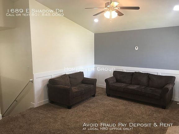 This 2400 square foot single family home has 5 bedrooms and 3.0 bathrooms. This home is located at 1689 E Shadow Dr, Eagle Mountain, UT 84005.