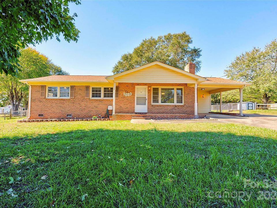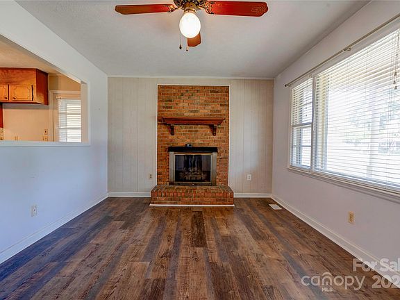This is a one story brick home with rocking chair front porch, 3 bedrooms, 1 bath that has been updated with walk in shower, fireplace with gas logs, covered rear patio and deck and storage buildings. This home is on a .48 acre lot with a spacious fenced backyard. This one has lots of potential!