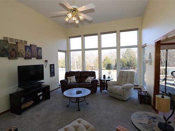 Breathtaking setting! Wonderful Ranch/Reverse 1.5 story on gorgeous 4.92 acre setting. Open & airy floor plan w/tons of light...huge windows overlook property! Master bdrm features large sitting rm/office. Finished w/o LL features (2) large bdrms w/walk-in closets & spacious family room. Ton's of storage in bsmt including sink for pets. Newer Living Rm carpet, fenced yard, neutral colors & more! Easy access & commute...just off 50 hwy.