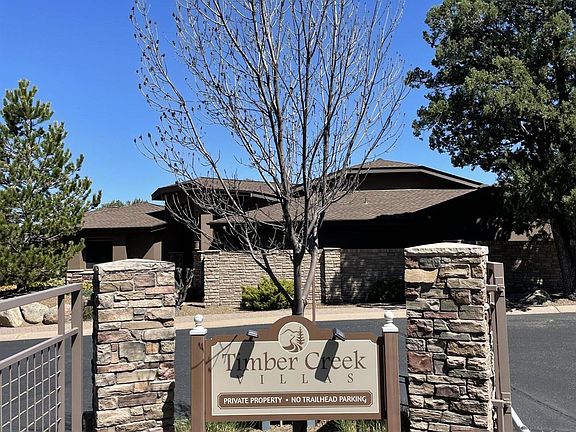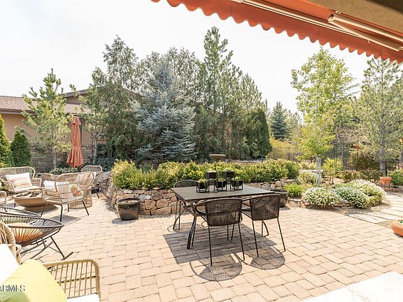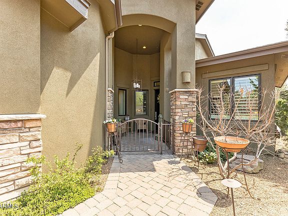 WOW! This luxurious single level home located in the trees just minutes from downtown Prescott's courthouse square has it all! 3 beds/3 baths PLUS a large, private office. A work from home paradise! This heavily upgraded home in Phase 2 of Timber Creek, is gorgeous! You will love the huge kitchen island w/ stainless built-in refrigerator, Bosch DW, & gas cooktop. There is custom cabinetry, 10' high ceilings, plantation shutters, crown molding & chair railing throughout. The large primary suite with sitting area, STUNNING bathroom, and custom closet with direct access to the laundry room is an owner's dream. Enjoy the gas fireplace inside, or entertain outside around the fire-pit in the beautiful, professionally landscaped private yard.