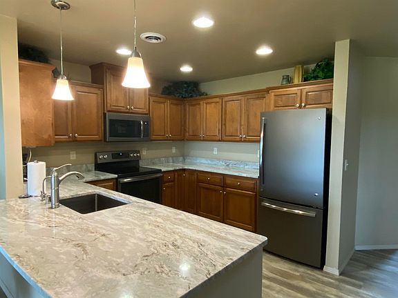 This open concept first floor condo is sure to please! Kitchen has granite counters, like new appliances, and lots of storage. There is a no step entry from front door and attached 2 stall garage. An open concept atmosphere, first floor laundry and a large master bedroom with en-suite bath and spacious walk in closet which has built in organizers. The western sunset is stunning and has an open grass area. Pets are allowed please review condo regulations. Close to shopping and highway access.