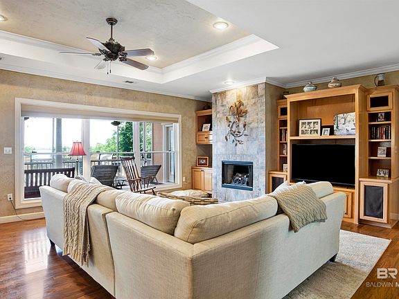 Don't miss seeing this stunning home located on Little Lagoon, there's so much more than just an incredible view! Original Owner and Builder. This home will make the perfect primary or vacation house. Downstairs you will find a living room, dining, kitchen, 3 bedrooms and 2 baths. Travel up the large stairway to the spacious great room with plenty of room for everyone, great for entertaining guests.Reading room/sunroom off of dining. Floor to ceiling bookshelves and stone gas fireplace. The master has a beautiful double sided gas fireplace that separates a sunroom/sitting area. The master offers separate bathrooms (one with a steam shower and other with a large,jetted tub). The master opens up to the screened in porch which leads to the sun deck. The house is equipped with an elevator and plenty of storage closets. Front and back yard has beautiful, lush landscaping with gated privacy fence in back. Dock and boathouse offer spectacular sunsets and great fishing spots. Fort Morgan offers plenty of beautiful walking trails, parks, and boat launch close by.Take your kayaks or boat to the Lagoon Pass and enjoy great fishing and white sandy beaches. Your search is over, just bring your swimsuits! No short term rentals allowed.