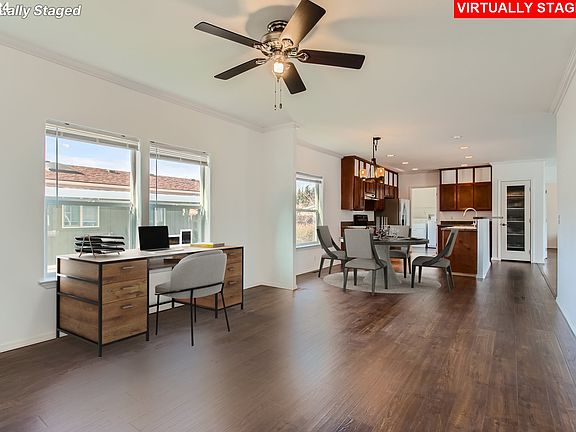 Seller offers a $10,000 credit towards your choice of buyer's closing costs, rate buydown or the equivalent of approximately one year park space rent with an acceptable offer. An amazing home nestled in a highly desirable Oregon neighborhood. At 12 years young, this spacious residence will have you excited for its endless possibilities to make it your own! Entering the home, a bright and comfortable living room invites you to a space of relaxation. Moving to the kitchen which provides ample room to cook your favorite meals with its vast cabinetry and pantry. Dining room flows out of the kitchen where you can host guests comfortably. A unique plus to this home is the second living room which can be utilized as an office, game room, or wherever your creativity leads you! Allow the main bedroom to be a space of serenity with its ensuite bathroom boasting a large walk-in closet and recently remodeled walk-in shower. The two additional rooms provide functional space and plenty of natural sunlight with the second bathroom being close by. Off the kitchen, the laundry room comes with washer and dryer as well as generous space above for storage. Outside you will find yourself in the lush yard area which also has a shed for additional storage. The recently stained decks are ready for your summertime bbqs and morning coffees. Car port can comfortably hold two-three vehicles. New HVAC system has been installed within the past year. This home has been well kept and refreshed with new flooring, a fresh coat of paint as well as new blinds providing warmth and cohesion to the space.This is a fantastic location that is hard to come by. Park has a club house where there are events and activities hosted. This home sits minutes from Billquist Elementary School and Alder Creek Middle School. Park Space rent is $833/month and includes garbage and sewer. This home is virtually staged.