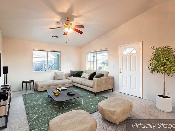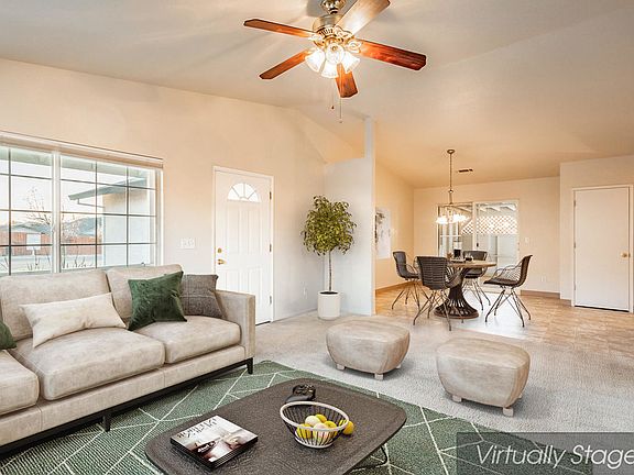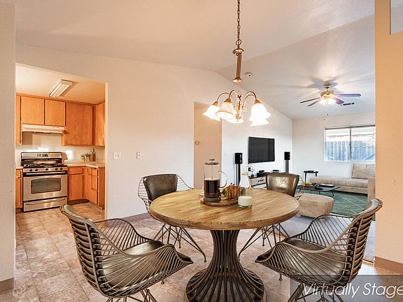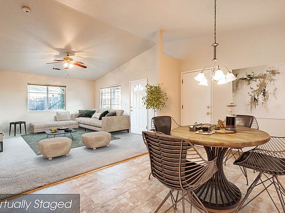 Move in ready 4 bedroom home with a large fenced yard! Bright and open featuring vaulted ceilings and new flooring in the kitchen and dining area. Ceiling fans and central heat/air. Great kitchen with a stainless steel range, pantry and dining area with patio access. Spacious master with a walk in closet. Enjoy the enclosed patio & gated RV parking