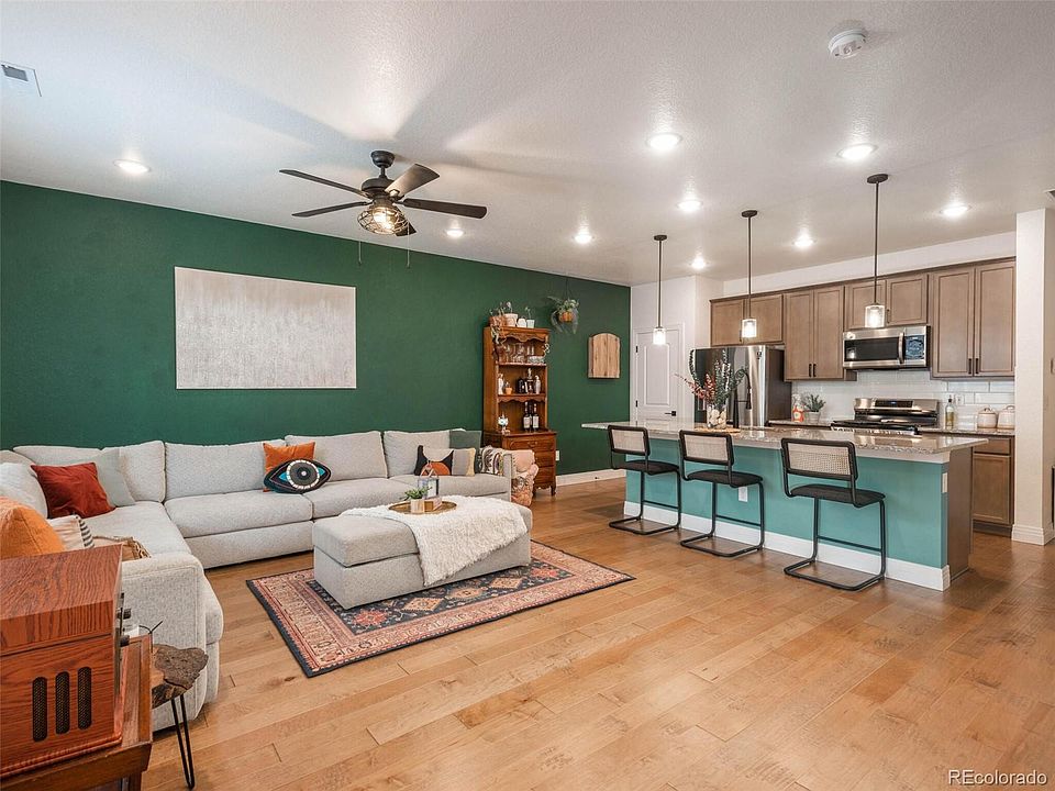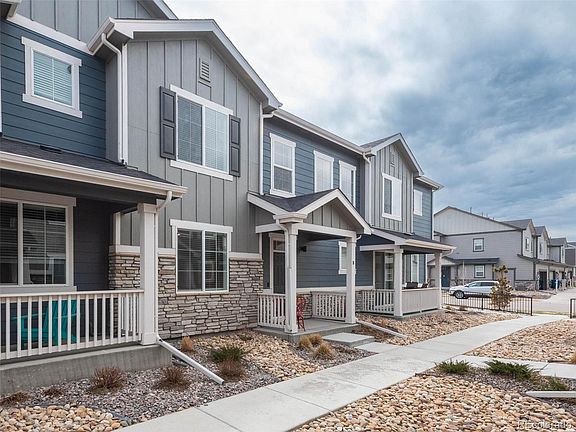 Welcome home to a nearly new townhome in The Villages at Buffalo Run! This exceptional and spacious 3 bedroom, 2.5 bathroom, 1,654 sqft home purveys luxury throughout. The picturesque, charming curb appeal of this unit invites you into a large sunlit living room, perfect for entertaining and cozy nights. The kitchen is designed for the home chef with plenty of cabinets, quartz countertops and stainless appliances, overlooking the living room to stay engaged in the activities. Upstairs offers a large primary ensuite with dual sinks, oversized shower, and walk-in closet. The second and third bedrooms are bright and spacious with an adjacent full bath. An office nook with quartz counter tops and laundry room complete the upstairs. The oversized 2 car garage is perfect for all the extra gear for the busy Colorado lifestyle. The Villages at Buffalo Run is an exceptional neighborhood with several parks, Buffalo Run Golf Course, a recreation center, and various shopping - there is always something to do! Commuting, exploring, and traveling are a breeze with quick access to E-470 and Hwy 76, DIA. This is the perfect home for the Colorado lifestyle, come make it yours!