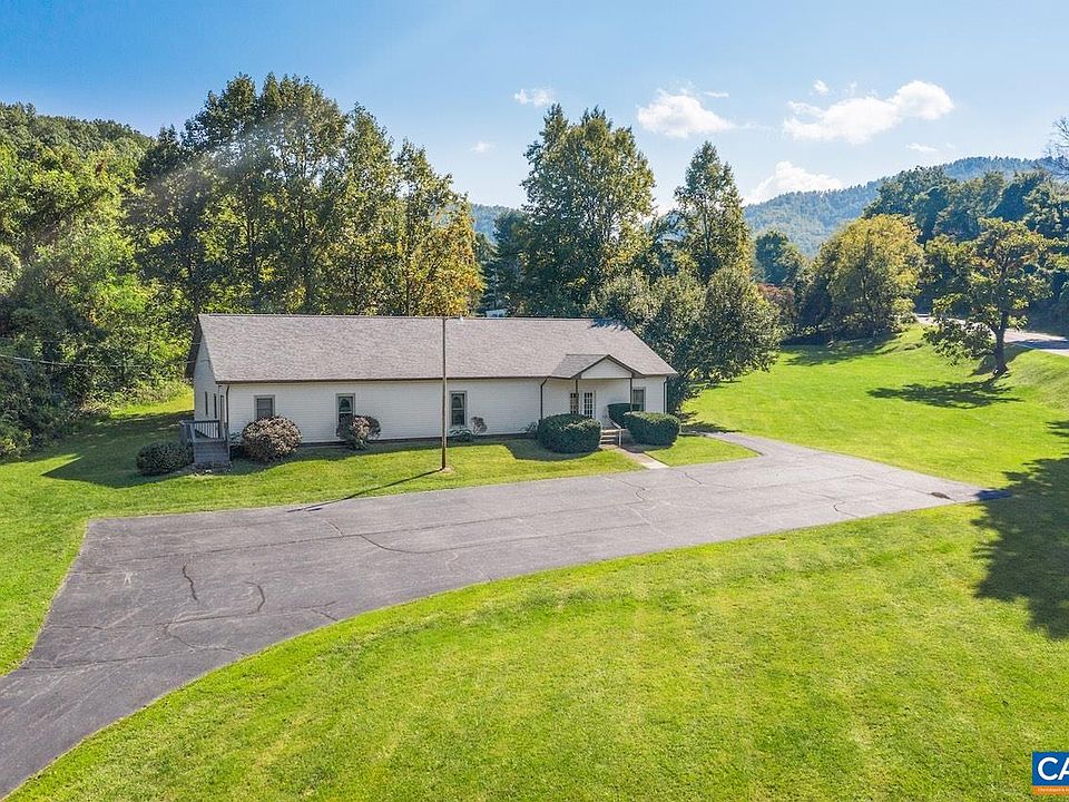 Mountain views, great road frontage, and prime location across from Devils Backbone and Beech Grove Rd to Wintergreen! Only a few miles to Nellysford town hub, unlimited outdoor recreation opportunities, and situated along Nelson 151 tourism trails. Nearly 4 acres and 4000 finished sq ft waiting for your idea to come to life. Amazing price per sq ft with ability to modify as needed. Utilized as a church so the current layout is a large entry leading to a spacious open room (sanctuary) and flanked on each end by smaller rooms that were used as classrooms and offices; has a basic kitchen with pantry and and two bathrooms. Features: 10 ft ceilings, ramp and a covered front porch (concrete), rear back deck, paved parking area, automatic light pole with CVEC, fiberoptic internet available, gently rolling to nearly level land with areas for gardening or expansive yard, roof (2017), two heat pumps (one replaced and air handler 2022), windows replaced (~2010), and more. Ag zoning permits multiple dwellings, boarding house, bed and breakfast, short term rentals, home occupations, agri-tourism uses, and many other options.