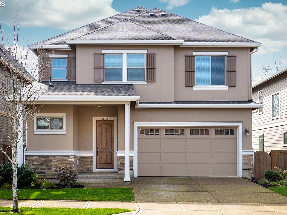 Exceptional value for this amazing 2018 built River Terrace East home. Spacious rooms, including a large and open bonus room in the lower level. High ceilings throughout, beautiful architectural moldings inc. crown molding and fully wrapped windows. Open concept living area on the main with tons of natural light and large kitchen w/central island. Flat, fenced yard w/ new grass. Territorial view to the SE. Community park and nearby walking trails. Great schools including Scholls Heights and Mountainside HS. Easy access to Progress Ridge shopping and restaurants.