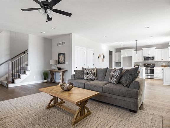 Introducing the Reid floor plan by Martens Family Enterprises. This open concept floor plan gives an incredible use of space with all the upgrades! Standard features in this home include Low-E windows, a covered patio, extended farmhouse front porch that opens to a park-like setting greenspace area. Blinds and garage door openers are standard. Mud Room, Hardwoods on the entire main level. Rare 3-car garage. The kitchen includes a large island, pantry, stainless steel appliances, and quartz, with an upgraded enamel kitchen cabinet surround. Upgraded black faucets and fixtures. Hardwood floors on the entire first floor. Loft area on second level. Lower your monthly expenses with the amenities the monthly dues include. This unique neighborhood has walking trails, FOUR pools, a fitness center, clubhouse usage, a basketball court, playground, and volleyball. Dues also include lawn mowing, landscaping bed maintenance, sprinkler maintenance (activation/winterization/backflow testing), and snow removal. Adjoining the greenspace is a perfect solution for those that want access to a large yard without all the hours of mowing. Close to both the elementary school, middle school, clubhouse, grocery store, restaurants, and more. Taxes and square footage are estimated.