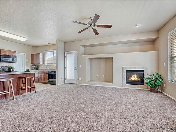 Amazing views and maintenance free living at it's finest! This beautiful ranch home is full of natural light and offers spectacular mountain views. The main floor living layout of this home has everything you would need on one floor! On the Main floor you will find a spacious master bedroom with an attached 5-piece bath, 2nd bedroom/office, living room with a fireplace, dining room, kitchen with island, pantry, full bath and a laundry area. Downstairs you will find a large open area for entertainment, 2 bedrooms, a full bath and lots of extra storage. Award winning District 38 schools! Maintenance free living - HOA maintains the lawn, snow and trash removal. New carpet, all appliances included, blinds throughout, storm door, beautiful light fixtures, private fenced in yard and extra parking space next to the 2 car garage. Easy access to Colorado Springs,Denver, the Air Force Academy and walking distance to the Santa Fe Trail. Hiking, biking, shopping, restaurants and entertainment are all close by!