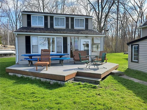 441 ft of Waterfront on 1+ Acres on Oneida Lake including your very own Peninsula! Near.State lands Abundant entertainment space whether you are out on the Lake or just relaxing on the spacious deck. Fishing, swimming, boating, and more; just a short 20 minute commute from Syracuse to your own Paradise.Ranch Home with an attached 1 Car Garage, a Cape Cod Style Cottage for your guests, Large Shed, Small Bunkhouse & a Playhouse. Parcels have public water and sewers. Can be sold furnished have misc. recreational items that may be included; just request. Opportunities to build on the 169 parcel with Town approval. Property includes boat hoists and docks.